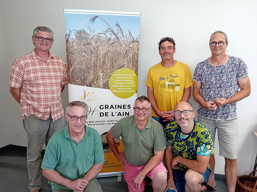 Le projet Graines de l’Ain a vu le jour à l’initiative d’un groupe d’agriculteurs. Ils expérimentent et développent la culture biologique de variétés anciennes depuis 2014. Ces blés anciens sont le fruit d’un travail de sélection mené par le collectif dans une démarche d’agriculture paysanne. Ils possèdent aussi une grande diversité génétique qui les rend adaptables aux différents terroirs et pratiques paysannes ainsi qu’aux changements climatiques.